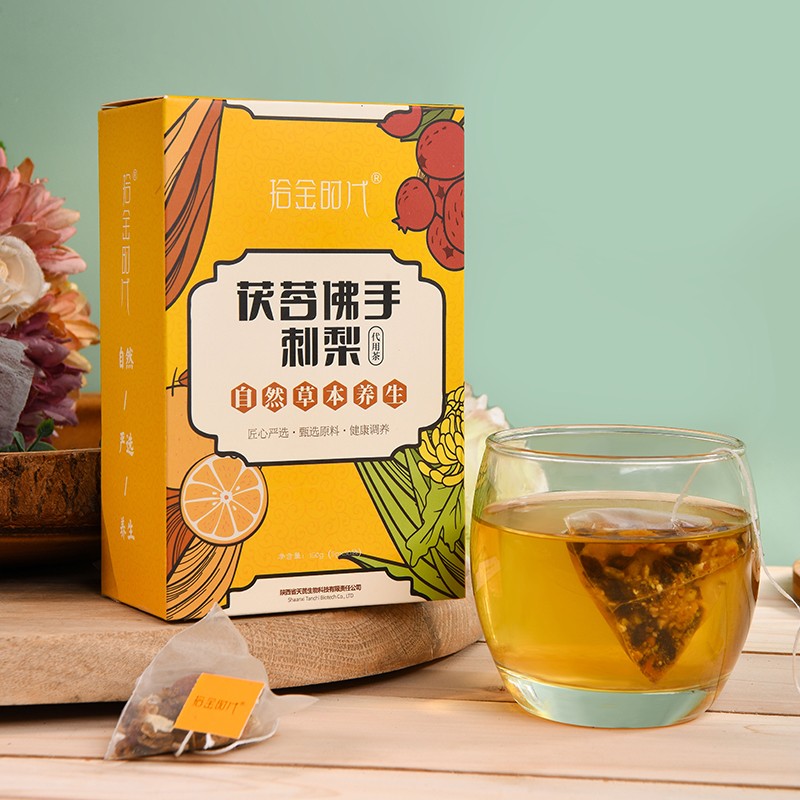 “拾金時代”品牌旗下子洲黃芪花樣養(yǎng)生系列——茯苓佛手刺梨代用茶,該產(chǎn)品原料包含大麥、茯苓、佛手、刺梨干、橘皮、大棗、山楂、酸棗仁、砂仁、沙棘、枸杞。匠心嚴選、甄選原料、健康調(diào)養(yǎng)。此代用茶搭配有養(yǎng)肝健脾、健胃消食、清熱去火、利尿排毒之作用,適宜脾胃不暢、食欲不振,肝火旺盛人群使用,幫助調(diào)理好腸道。