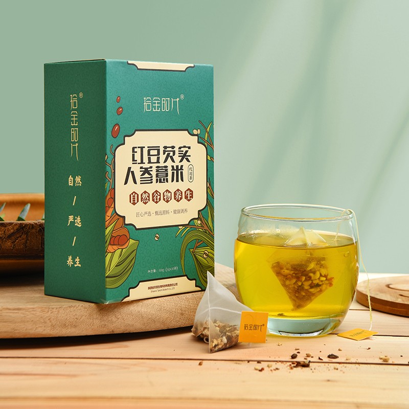 “拾金時代”品牌旗下子洲黃芪花樣養(yǎng)生系列——紅豆芡實人參薏米代用茶,該產(chǎn)品原料包含薏苡仁、紅豆、赤小豆、大麥、芡實、橘皮、苦蕎、梔子、人參(人工種植五年以下)。匠心嚴選、甄選原料、健康調(diào)養(yǎng)。此代用茶搭配有祛濕氣、理氣和中、滋補脾胃之作用,適宜體內(nèi)濕氣集聚,脾胃虛弱人群使用,日常輕養(yǎng)生的最佳選擇。